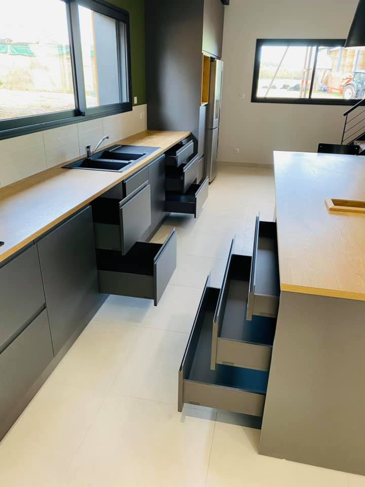 - Design moderne et épuré alliant bois clair et façades gris mat