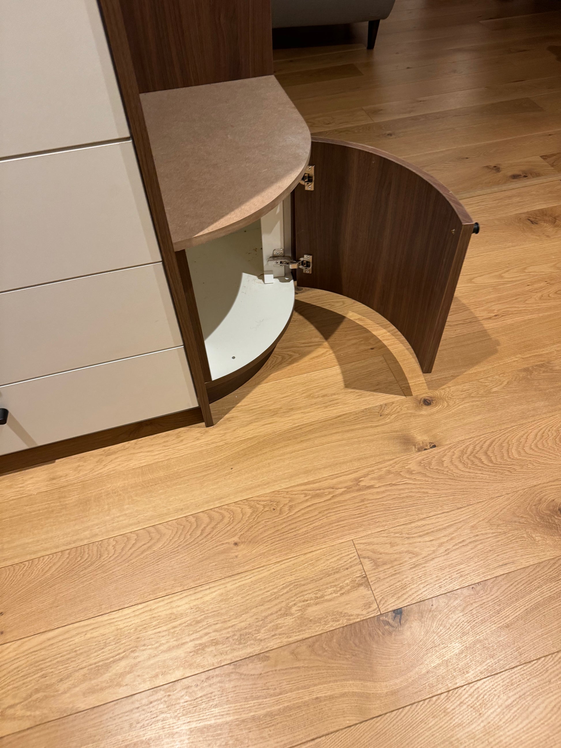 La partie arrondie du meuble a été spécialement conçue pour servir d’assise, alliant confort, fonctionnalité et esthétisme.